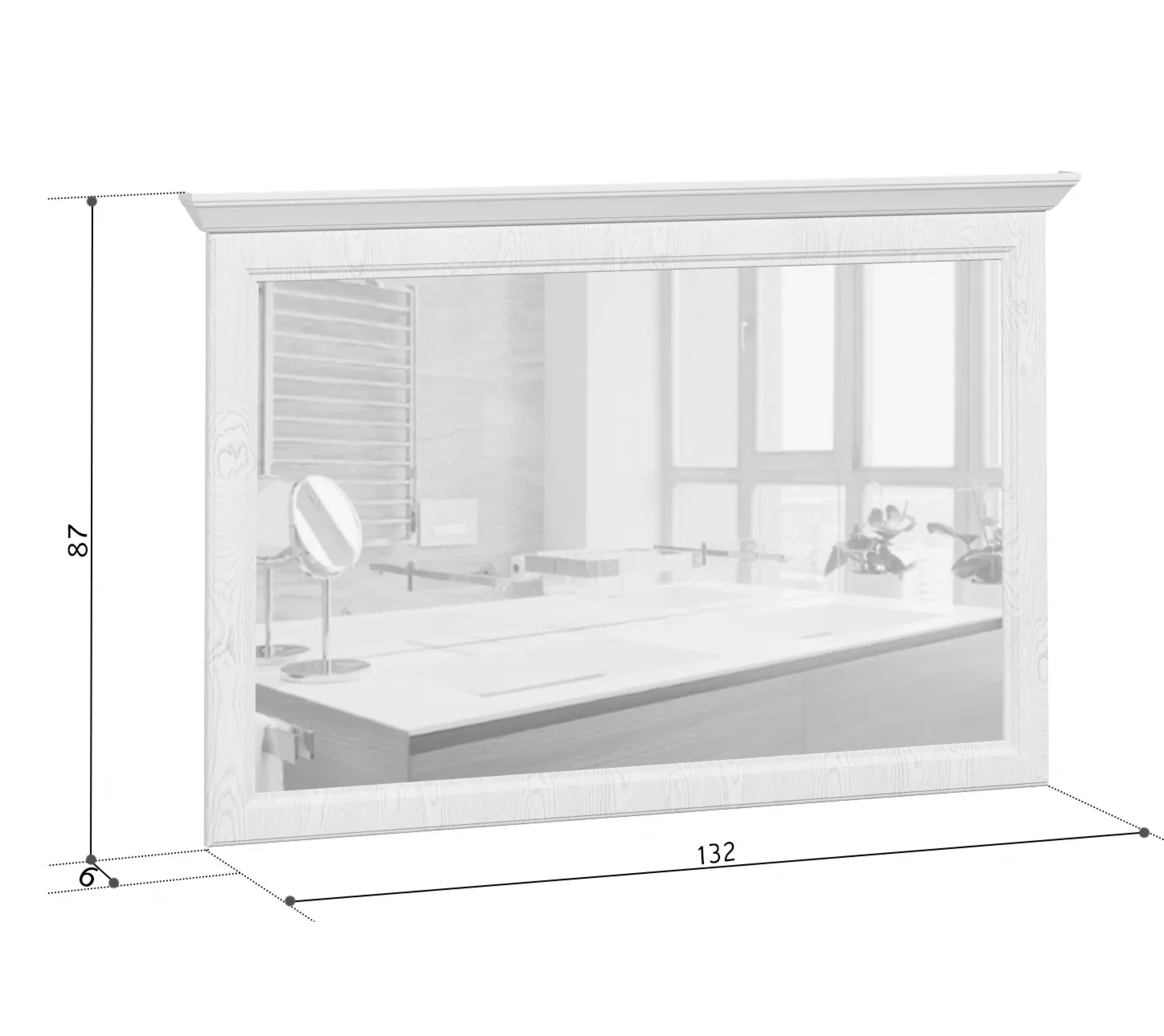 Высота зеркального полотна составляет 87 см, а ширина ‑ 132 см. Модель с такими размерами лучше всего сочетается с комодом, туалетным столиком и тумбой коллекции «Стилиус». Для большей выразительности производитель BRW украсил зеркало Stylius рамкой в цвете орех донской и стилизованным карнизом. Красивый эффект состаривания ему придает рамка, в которой поры окрашены краской более темного оттенка, чем поверхность. При ее изготовлении использовал материалы высокого класса (МДФ, ЛДСП категории Е1).